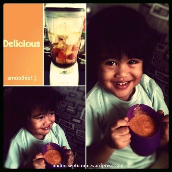 Gambar: Alma and her mango+papaya smoothies 🙂