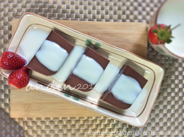 Chocolate Pudding with Milky Custard (Puding Coklat Saus Vla Susu)